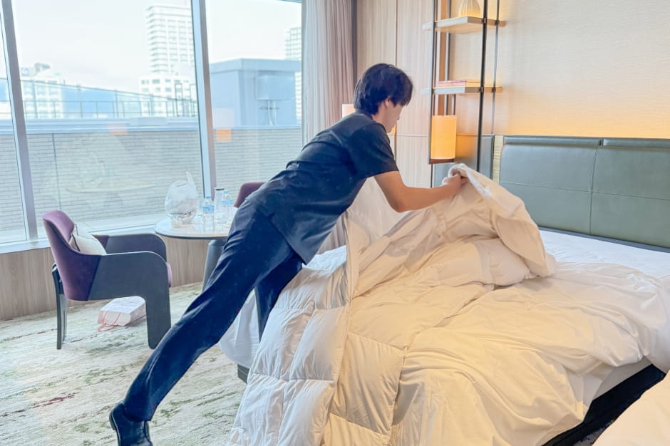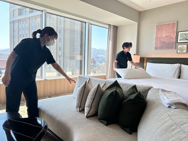 ラグジュアリーホテルでの清掃業務。